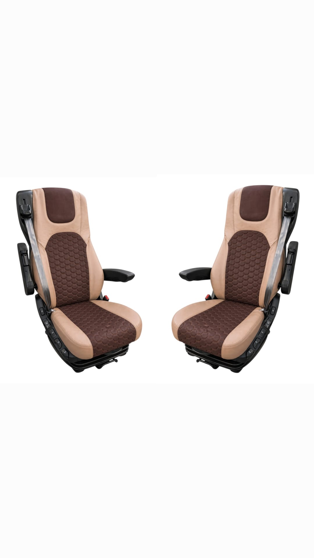 Nowoczesny design (np. pikowanie w plastry miodu) nadaje wnętrzu ciężarówki elegancki i profesjonalny charakter.
